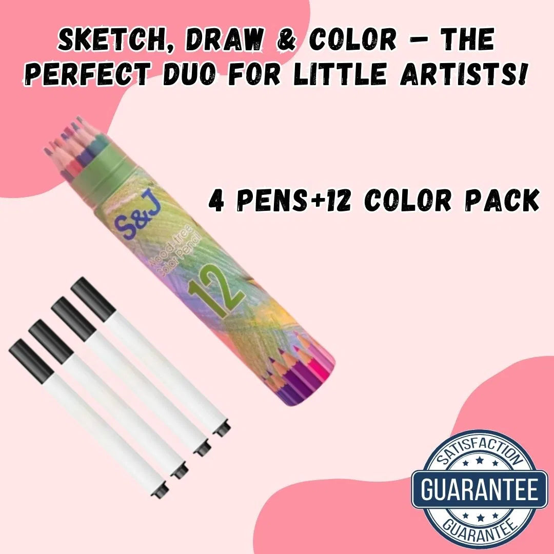 The 4 Pens + 12 Color Pack is the ultimate art set to keep your child engaged, focused, and imaginative. With vibrant colors and easy-grip pens, it encourages hours of screen-free drawing, coloring, and learning.